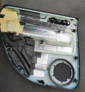 Jetzt könnt ihr noch ziemlich Freestyle und so gut wie möglich, das Alubutyl auf dem Aggregateträger verteilen. Die runden schwarzen Gummi-Öffnungen freilassen - ansonsten kann man sich austoben! Das selbe gilt für die Türverkleidung selbst. Klopft sowohl die Tür und auch die Türverkleidung nach möglichen Geräuschquellen ab und versucht diese ruhig zu stellen. Profis und Hifi-Experten würden sicher weiteren Handlungsbedarf sehen, das Ergebnis ist aber dennoch für meine Begriffe absolut ausreichend.